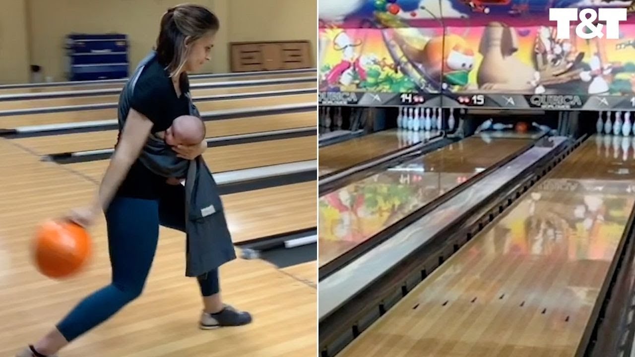 A multitasking mom bowled a superb strike while breastfeeding her baby daughter. Mom-of-two Kristin Whalen was nursing daughter Lorelei while celebrating Kristin’s nephew’s birthday at a bowling alley in Salem, Illinois, on June 7. Kristin, who hadn’t been bowling for a couple of years, was discussing how moms need to and can do anything with her friends while she was breastfeeding. As her turn came around, she said ‘like even bowl while nursing’, before picking up the ball and beginning her approach.