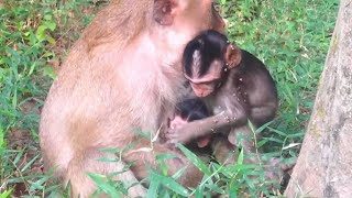 Bronco Baby Monkey Try To Get Breastfeeding Even His Brother Come Across Him.