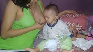 Breastfeeding and mother and son lying hammock playing | Mom And Baby #11 Mother and son play hammocks, the sun is beautiful. The sun rays through the window. One day with lots of fun and happiness.l