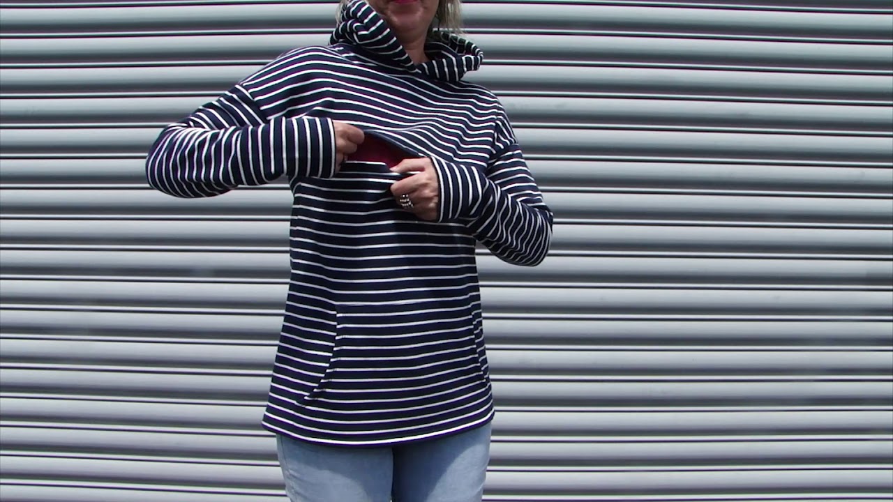 A demo video to show you how this Breastmates Breastfeeding Hoodie works. In the video, you can see there is a horizontal zip across the bust of the hoodie. This can be opened from either side, so that you can access each breast to feed your baby. It is very easy to feed your baby in this winter hoodie.